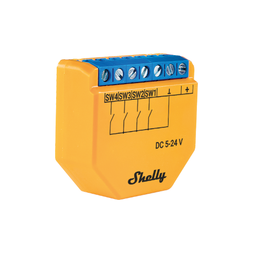 You can use Shelly Plus i4 DC to control other connected Shelly relays, sensors, or HTTP and MQTT-controlled devices. Small enough to fit behind every wall switch, Shelly Plus i4 DC can control the action of four inputs. Shelly Plus-Series devices pack an extremely fast processor, quicker connectivity, improved integration, and enhanced safety!